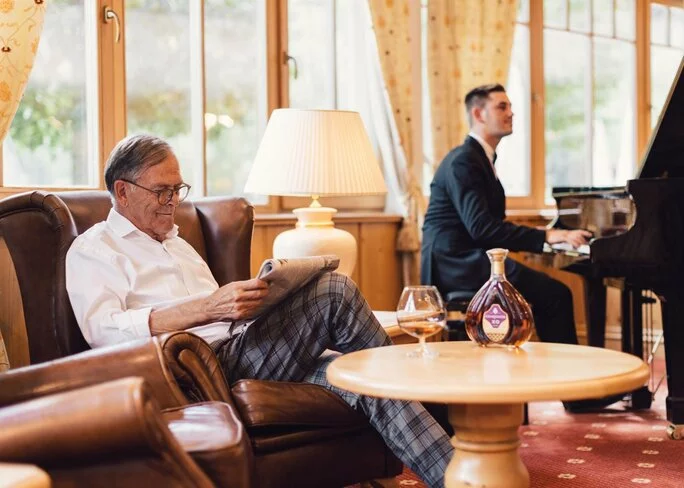The crackling of the open fire sets the acoustic accompaniment for stimulating conversation. Warm colours and sophisticated materials caress the senses. Everything is enchanted by this ambience. What we add to this backdrop in our luxury hotel in South Tyrol is the appealing wine accompaniments, chosen by the sommelier. Fine distillates, regional beers & grappa. Indoors or beneath the stars. Our piano bar, the terrace and the Kamin lounge inspire and relax, at any time of the year.