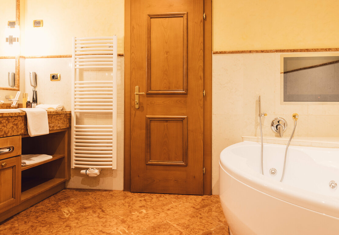 55 m² - The Private Spa Suites are double-room suites. They measure 55 sqm and are the "suites for wellbeing" in our Luxury Hideaway & Spa Retreat with a steam room en suite. The Private Spa Suites, starting with the selected colours, following through to the furnishings and all the way to the bath area, are designed with body care and the well-being of the spirit in mind. All Private Spa Suites have a tiled stove, a balcony with beautiful Alpine panoramic views and are located on the third floor. Bath: Steam room, shower, Whirlpool, bath-TV, separate WC, bidet.